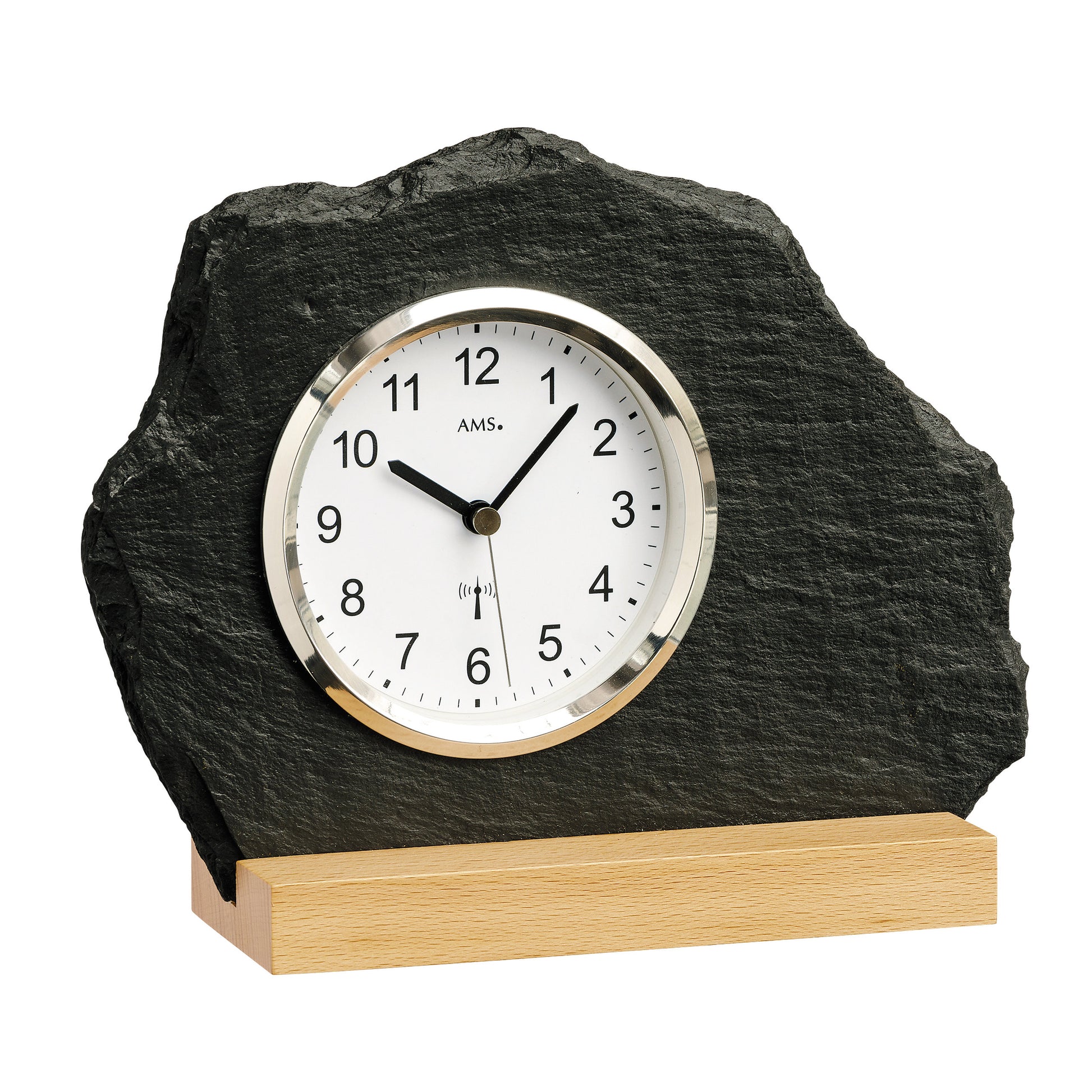 | Gehäuse | Naturschiefer. Massivholz Buche. Frontring Silber |