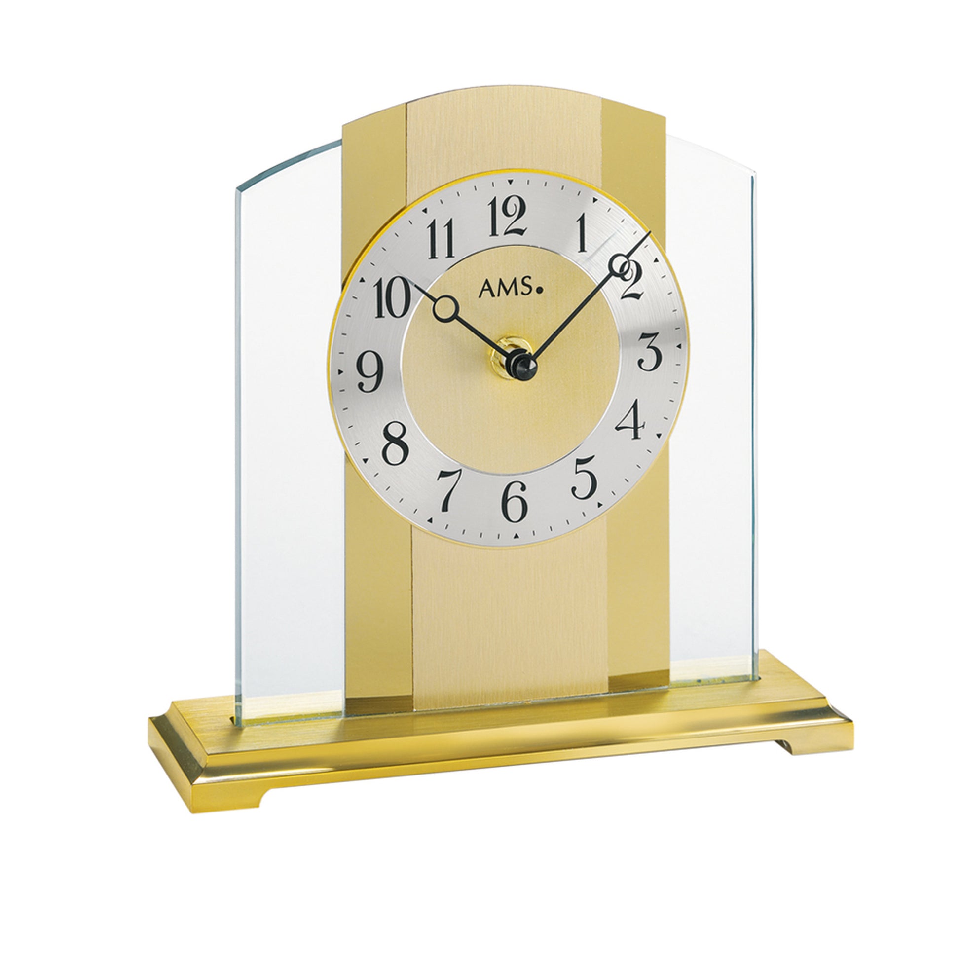 | Gehäuse | Metallsockel.Mineralglas.Messing-Applikation |